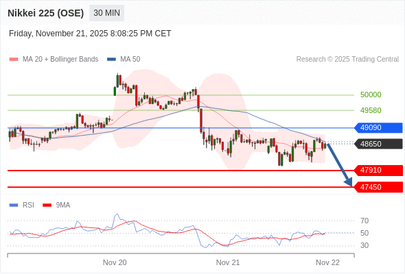 在 49090 之下,看跌,目标价位为 47910 ,然后为 47450 。