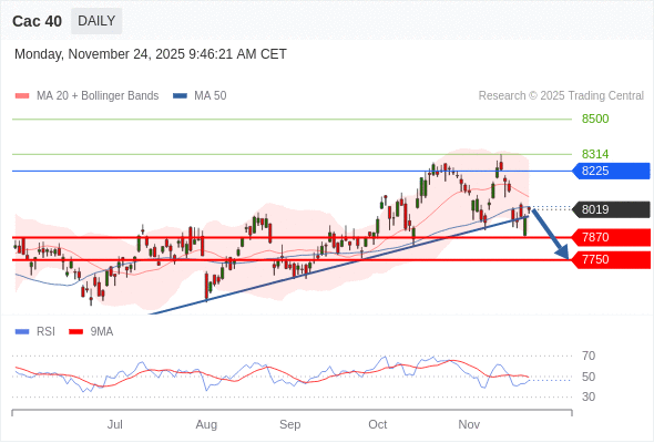 在 8225 之下,看跌,目标价位为 7870 ,然后为 7750 。