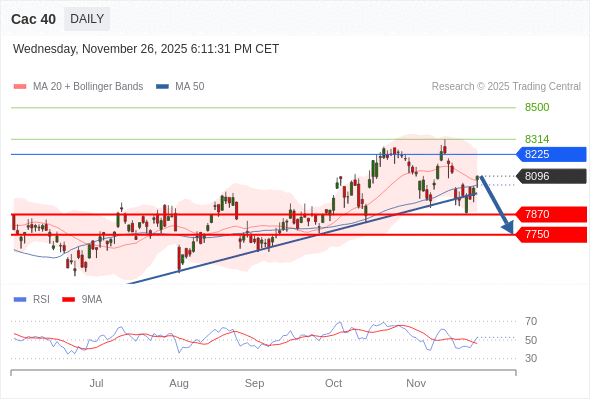 Cac 40 短线: 没有明显变化趋势。