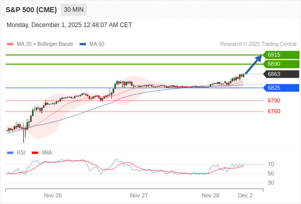 在 6825 之上,看涨,目标价位为 6890 ,然后为 6915 。