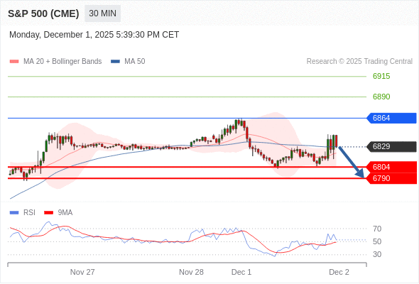 在 6864 之下,看跌,目标价位为 6804 ,然后为 6790 。