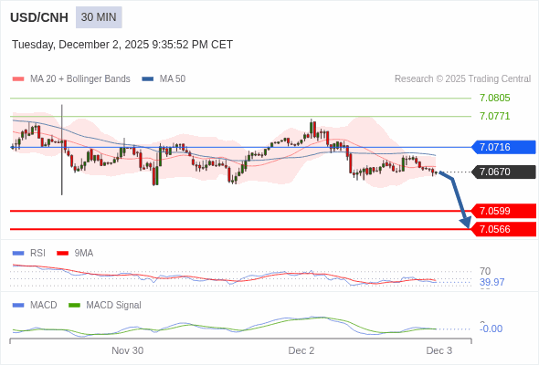 交易策略: 看跌,在 7.0716 之下。
