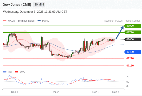 在 47400 之上,看涨,目标价位为 47790 ,然后为 47920 。