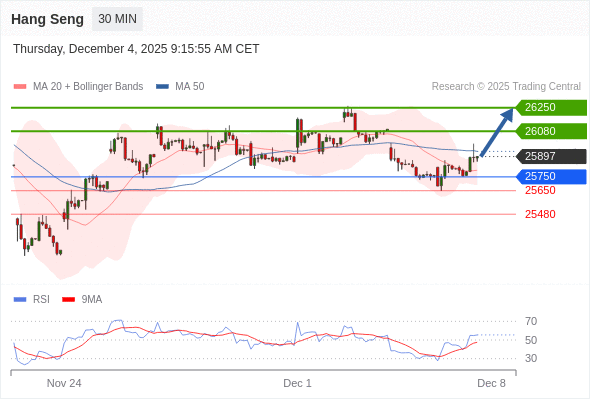 在 25750 之上,看涨,目标价位为 26080 ,然后为 26250 。