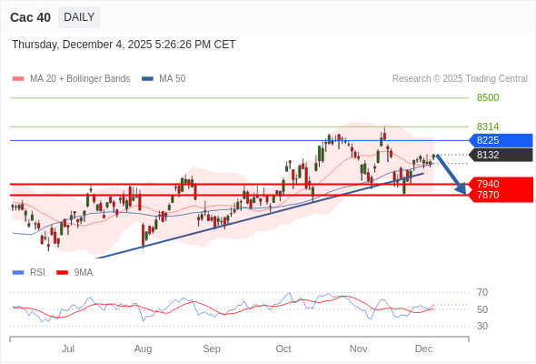 Cac 40 短线: 短期调整。