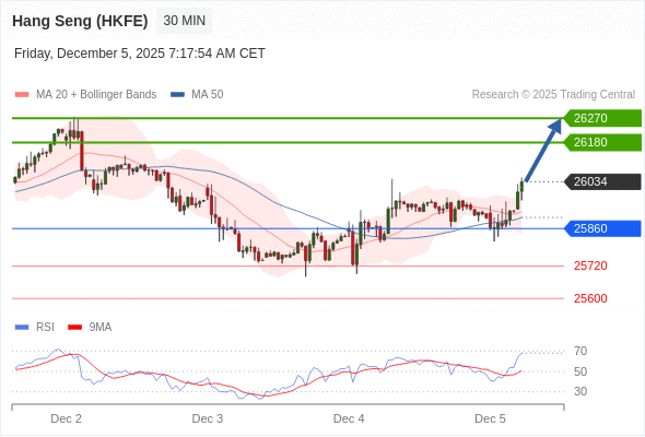 在 25860 之上,看涨,目标价位为 26180 ,然后为 26270 。