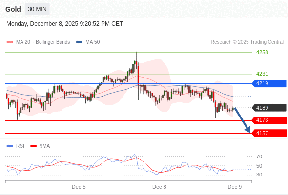 在 4219 之下,看跌,目标价位为 4173 ,然后为 4157 。