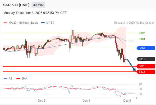 在 6864 之下,看跌,目标价位为 6828 ,然后为 6818 。