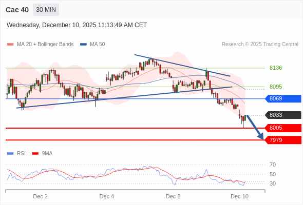 Cac 40 当日内: 短期关键阻力位在8069。