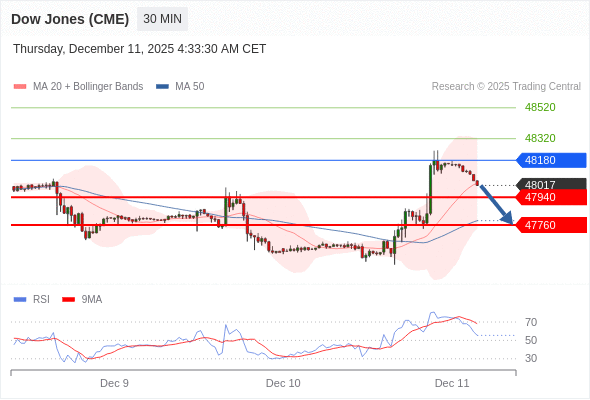 在 48180 之下,看跌,目标价位为 47940 ,然后为 47760 。