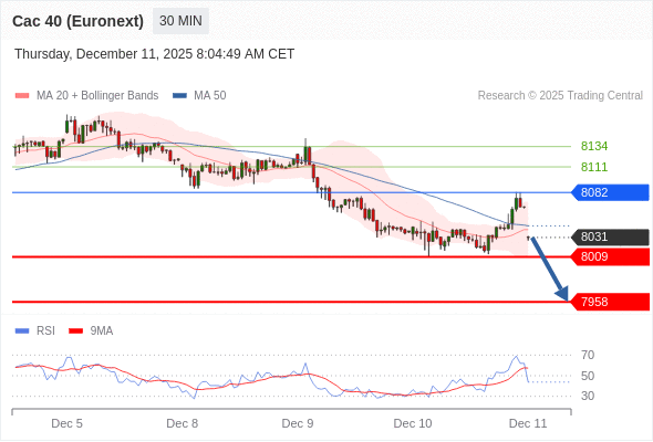 在 8082 之下,看跌,目标价位为 8009 ,然后为 7958 。