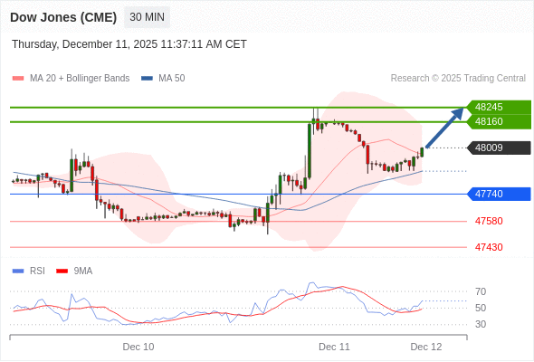 在 47740 之上,看涨,目标价位为 48160 ,然后为 48245 。