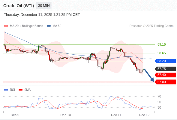 交易策略: 在 58.20 之下,看跌,目标价位为 57.40 ,然后为 57.00 。