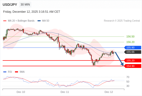 在 155.90 之下,看跌,目标价位为 155.20 ,然后为 154.90 。