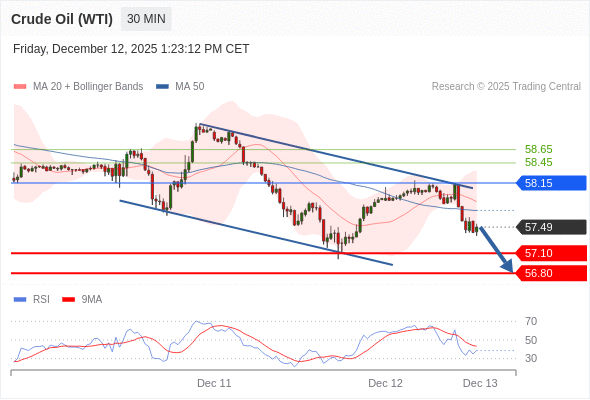 在 58.15 之下,看跌,目标价位为 57.10 ,然后为 56.80 。