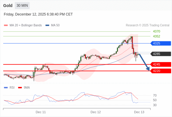 在 4325 之下,看跌,目标价位为 4245 ,然后为 4220 。
