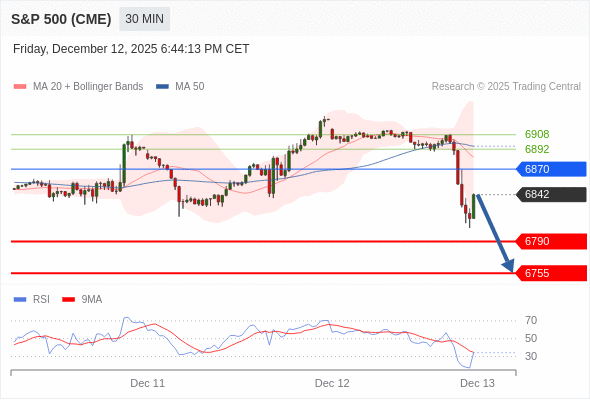交易策略: 在 6870 之下,看跌,目标价位为 6790 ,然后为 6755 。