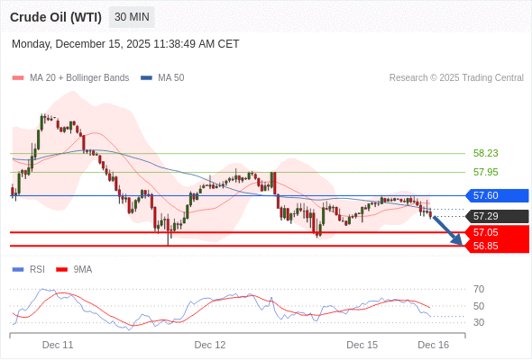 在 57.60 之下,看跌,目标价位为 57.05 ,然后为 56.85 。