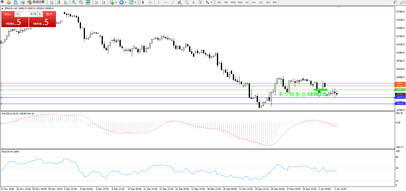 日经指数JPN225——4小时K线图: