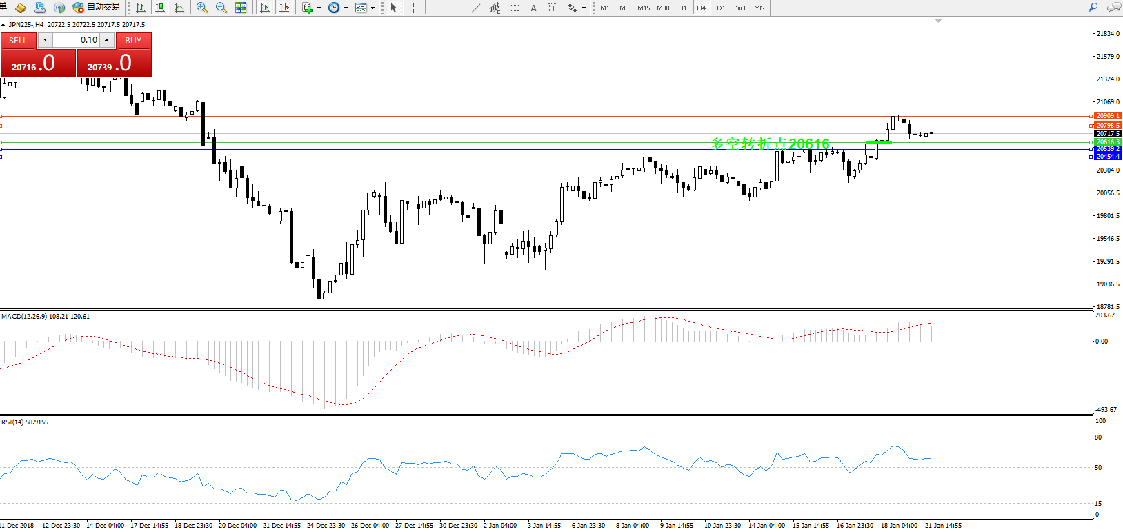 日经指数JPN225——4小时K线图: