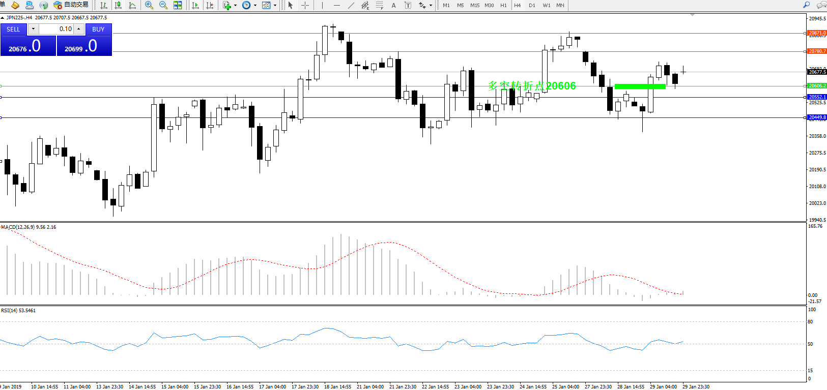 日经指数JPN225——4小时K线图: