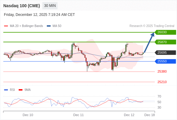在 25550 之上,看涨,目标价位为 25870 ,然后为 26030 。