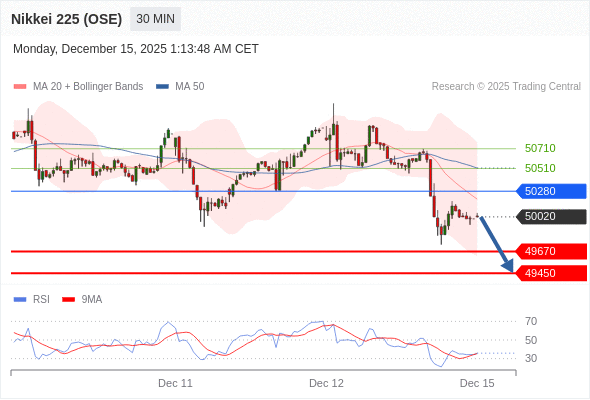 日经225股指期货 (OSE) 当日内: 短期关键阻力位在50280。