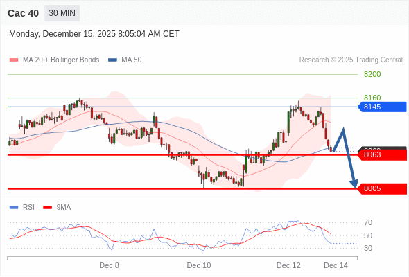 在 8145 之下,看跌,目标价位为 8063 ,然后为 8005 。